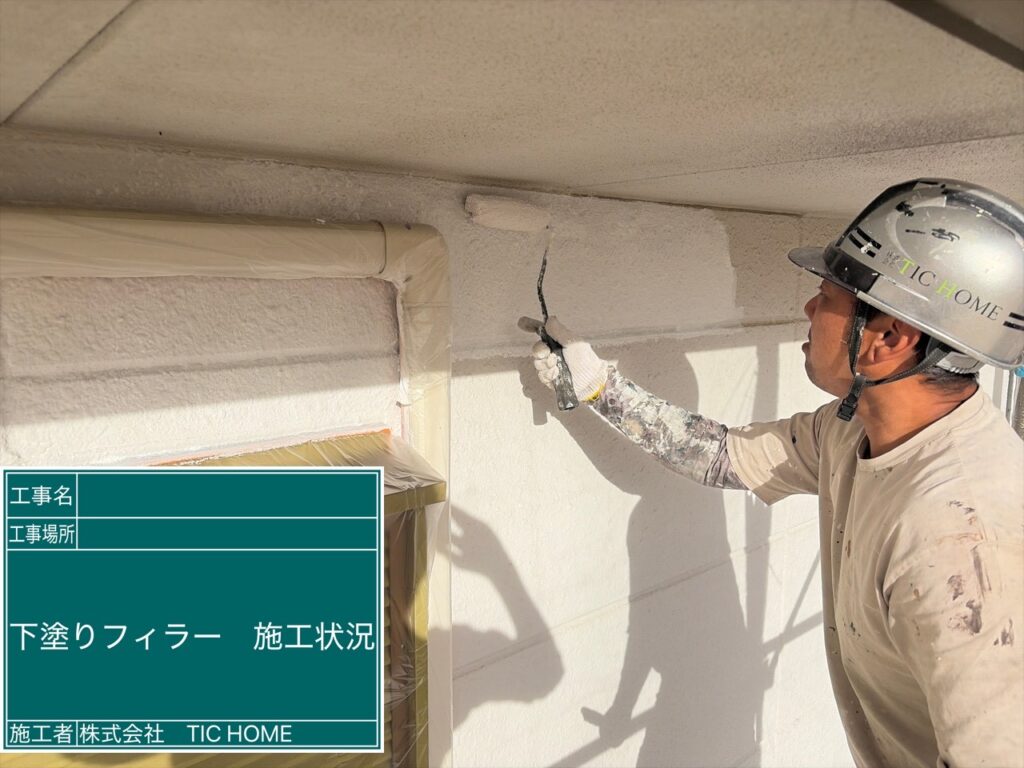 そこで今回は、モルタル壁専用とも言える下塗り材**「フィラー」**の工程をご紹介します。