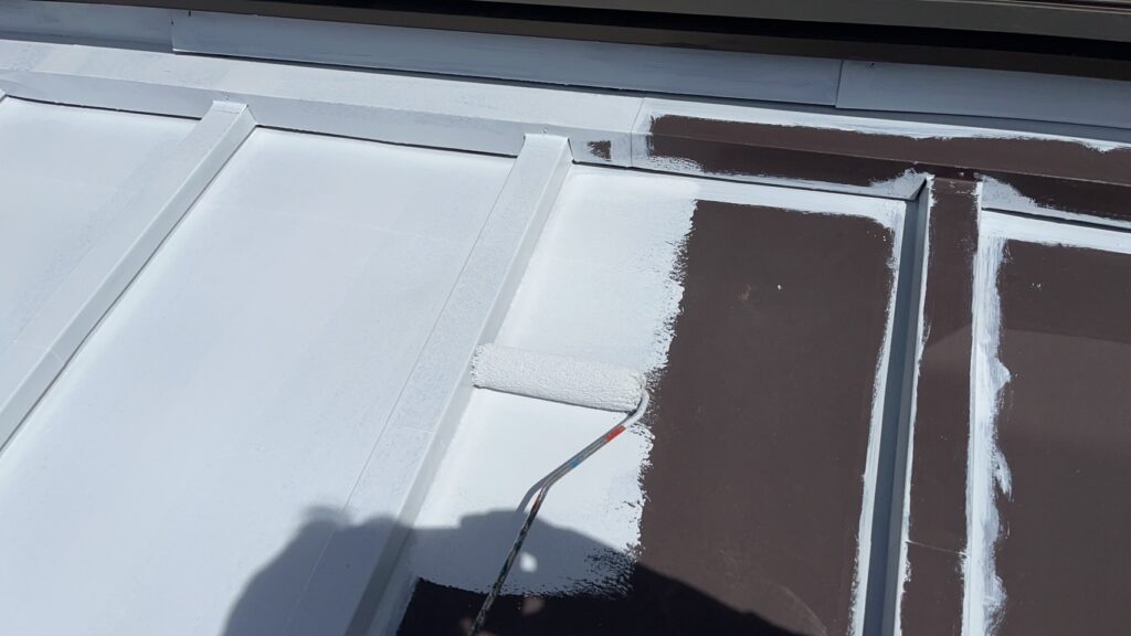 その後、金属屋根専用の**錆止め塗料(下塗り材)**を均一に塗布しました。