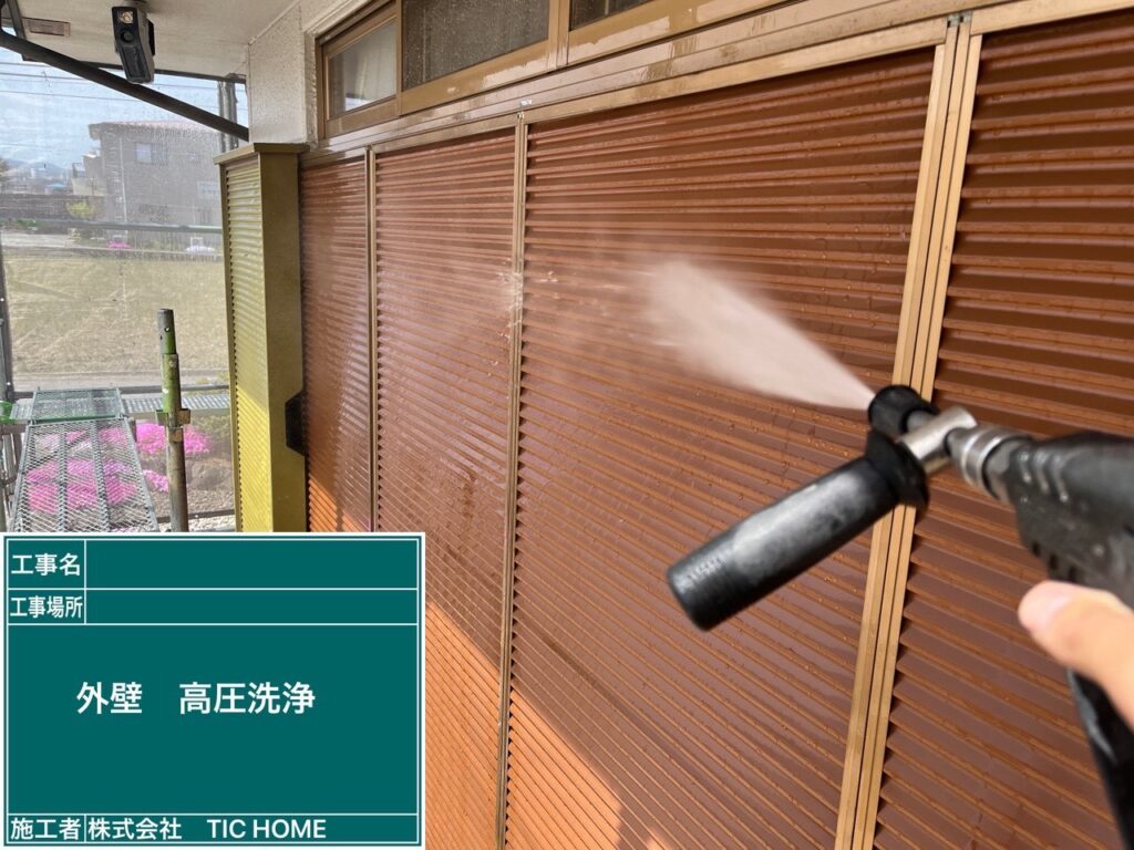 山梨県甲府市にて、外壁塗装前の高圧洗浄を施工しました。