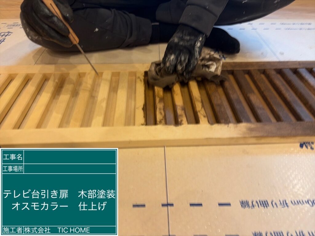 【富士吉田市 木部塗装・家具塗装】テレビ台 引き扉 オスモカラー施工|費用・相場・塗り替え時期
